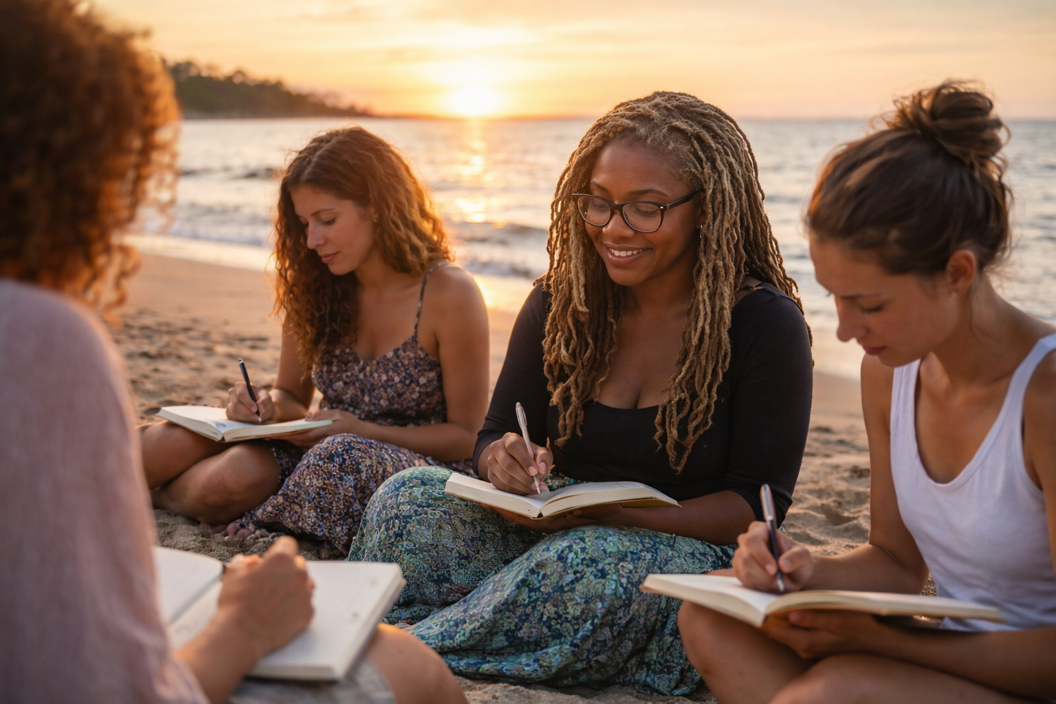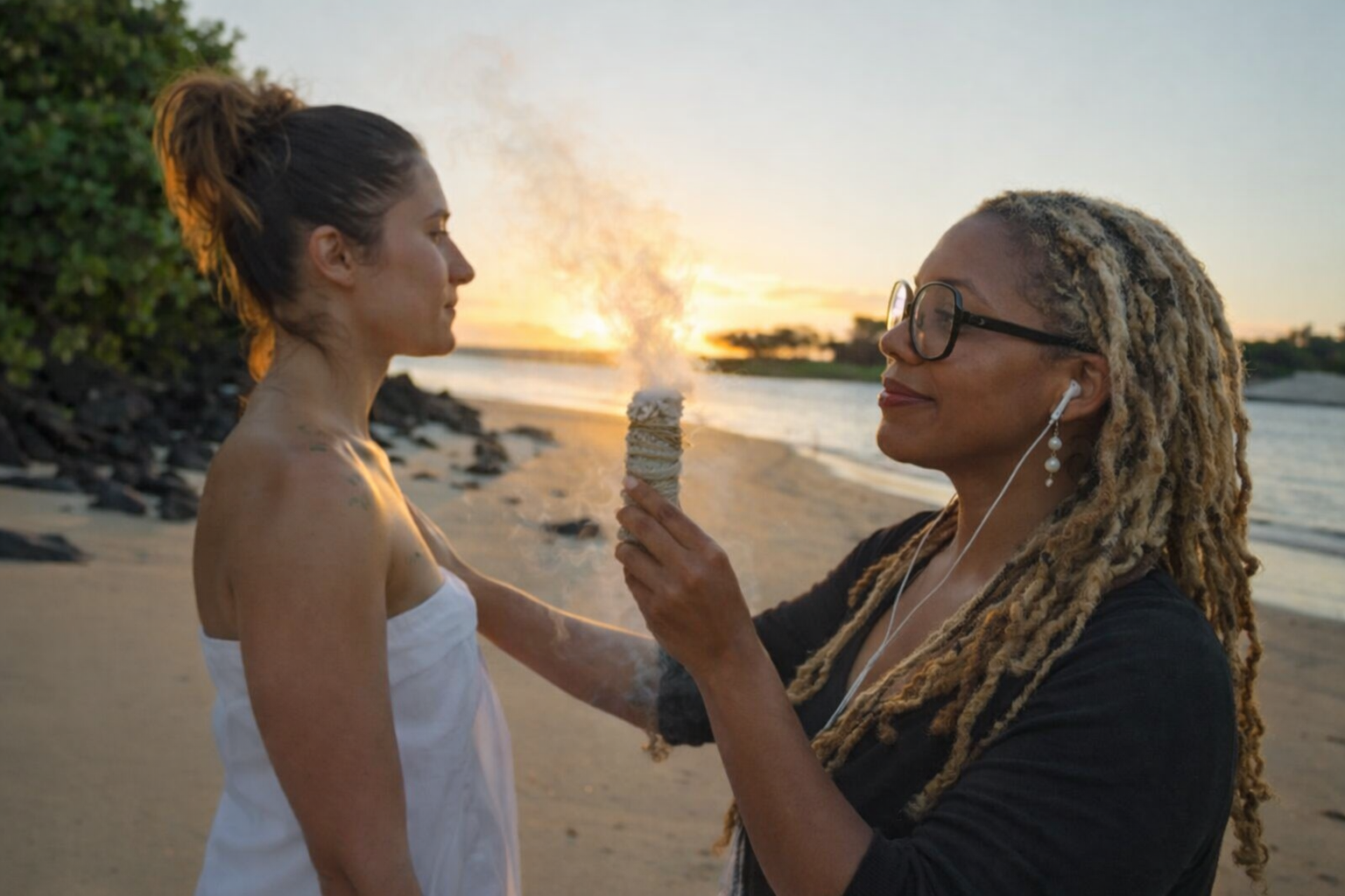 Rather than simply visiting the beach, you’ll be led through a thoughtfully structured yet relaxed flow that combines grounding, reflection, and connection to the natural setting. The experience includes gentle breathwork, guided journaling prompts, and a soft smoke cleansing using sage or incense to help create a calm and focused atmosphere.